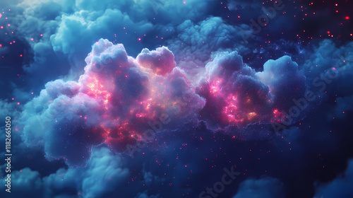 Abstract digital cloud with glowing particles, representing modern technology and data storage solutions in a futuristic setting. Cloudspire. Illustration
