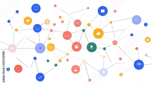 Abstract digital connectivity illustration with colorful icons representing various online services