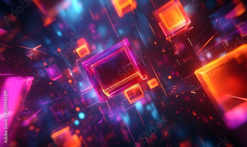 Abstract Digital Cubes in a Dynamic and Colorful Arrangement with Light Effects