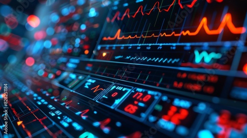Abstract digital data display showing colorful graphs and charts, representing financial market analysis, big data, and technology trends.