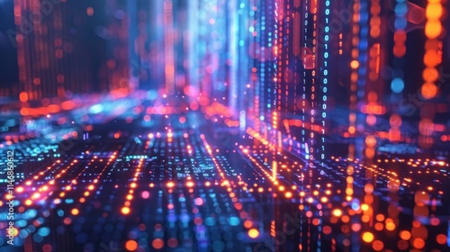 Abstract Digital Data Stream: A Symphony of Binary Code and Glowing Lights