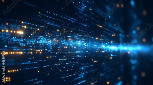 Abstract digital data stream background showing glowing data flow and futuristic concept with blue technology elements.