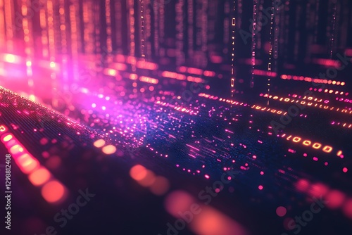 Abstract Digital Data Stream, Binary Code Flowing in Pink and Orange Hues
