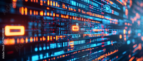 Abstract Digital Data Stream Futuristic Technology Background with Glowing Binary Code and Circuitry