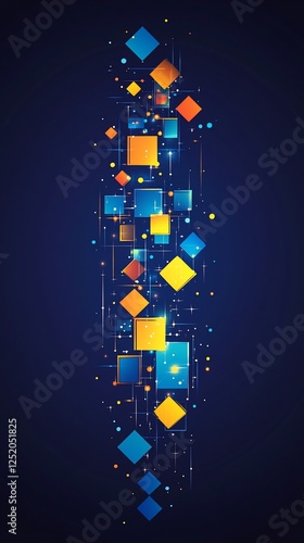 Abstract digital data stream, glowing squares, dark background, tech concept