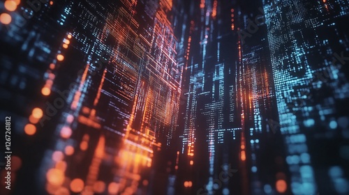 Abstract Digital Data Stream Orange Blue Technology Background Futuristic Network Code Lines Digital Art Modern Design Innovation Technology Concept