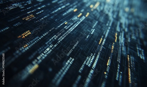 Abstract digital data stream with glowing elements representing information flow.