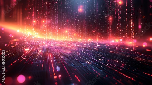 Abstract Digital Data Stream with Light Streaks and Particle Effects