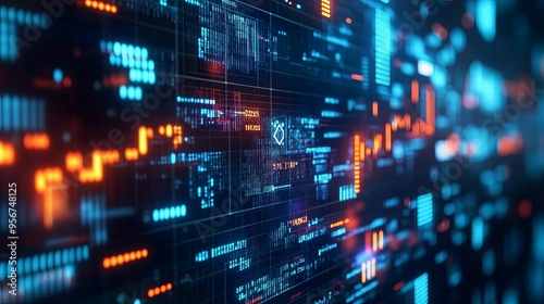 Abstract Digital Data Visualization with Blue and Orange Glow