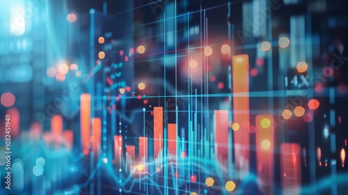 Abstract Digital Data Visualization with Blurred City Lights and Financial Chart