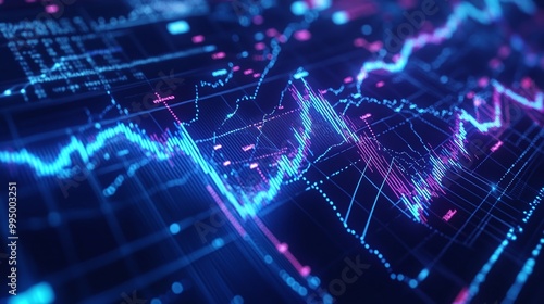 Abstract digital data visualization with vibrant lines and graphs on a dark background.