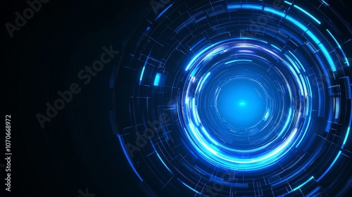 Abstract digital design featuring blue glowing circular patterns and lines.