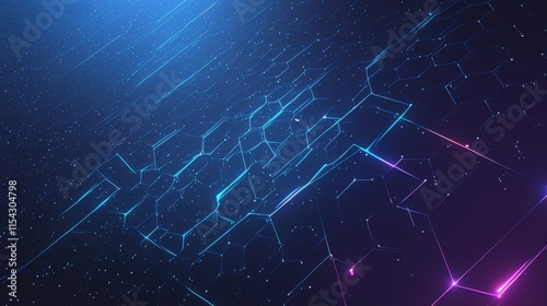Abstract digital design with glowing lines and hexagonal patterns.