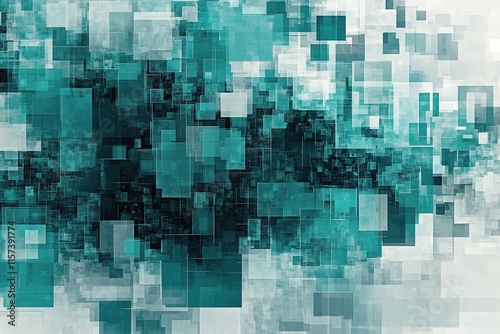 abstract digital design with pixelated blocks in various shades of teal and gray forming futuristic and structured