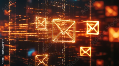 Abstract Digital Email Communication Concept in Neon Glow Style