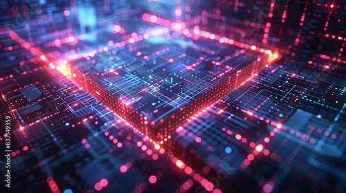 Abstract digital frame for a blockchain-based game, with a futuristic design and neon accents