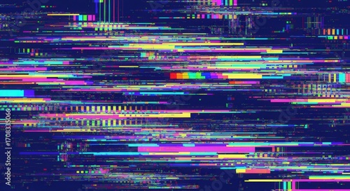 Abstract Digital Glitch Art with Colorful Stripes and Vibrant Patterns in a Dark Background