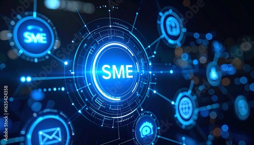 Abstract digital graphic depicting a network or system related to SME (Small and Medium Enterprise)