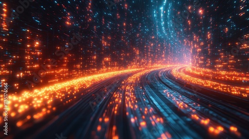Abstract Digital Highway Glowing Neon Trails and Data Stream in a Futuristic Cyberspace Tunnel