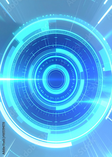 Abstract digital illustration of concentric blue circles with glowing light streaks, creating a futuristic, technological, and high-tech feel.