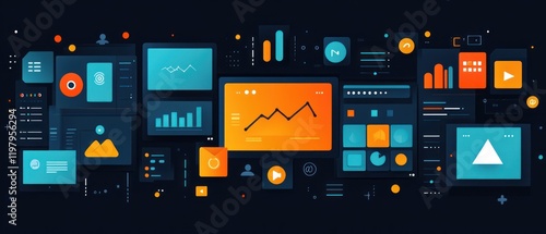 Abstract digital interface showcasing data visualization and analytics.