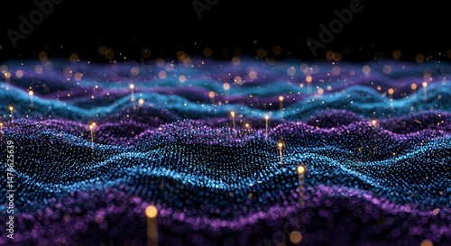 Abstract digital landscape of data points