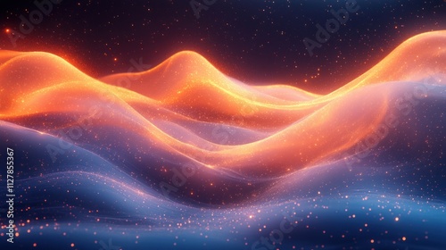 Abstract Digital Landscape with Flowing Waves of Light and Particles for Technology and Education