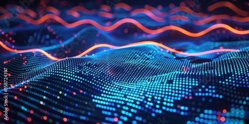 Abstract Digital Landscape with Glowing Lines