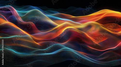 Abstract digital landscape with glowing orange particles and bokeh lights