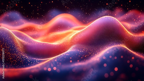 Abstract digital landscape with waves and bokeh creating a vibrant and illuminated display
