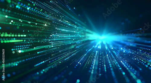 Abstract digital light pattern with dynamic blue and green lines creating a sense of motion and futuristic technology concept.