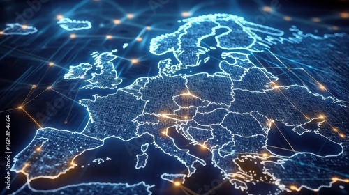 Abstract digital map concept of European global network and connectivity- data transfer and cyber technology