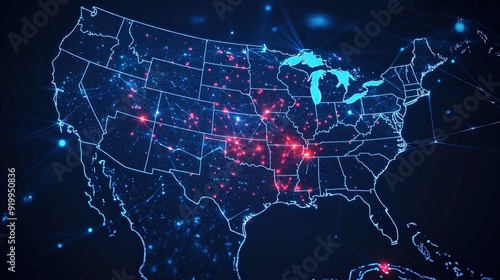 Abstract Digital Map. Connected USA: Data Flow Across the Nation