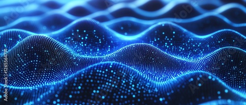 Abstract digital matrix with glowing blue circuits and data streams flowing dynamically