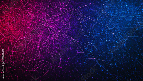 Abstract digital network backdrop with connecting lines in vibrant pink and blue hues, futuristic technology theme.