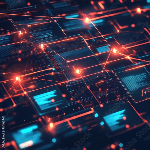 Abstract digital network background with glowing lines and nodes.