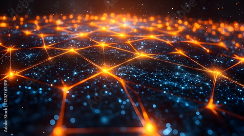 Abstract Digital Network Connection with Glowing Orange and Blue Nodes