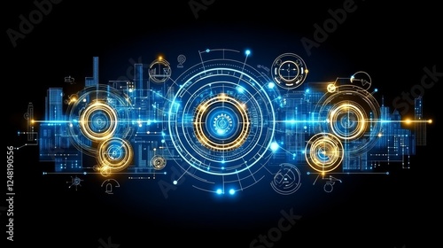 Abstract Digital Network Futuristic Technology Background Golden Blue Circuits