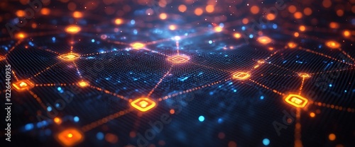 Abstract Digital Network: Glowing Blue and Orange Connections