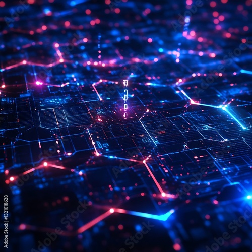 Abstract digital network, glowing nodes, connections, data flow, tech background, website banner