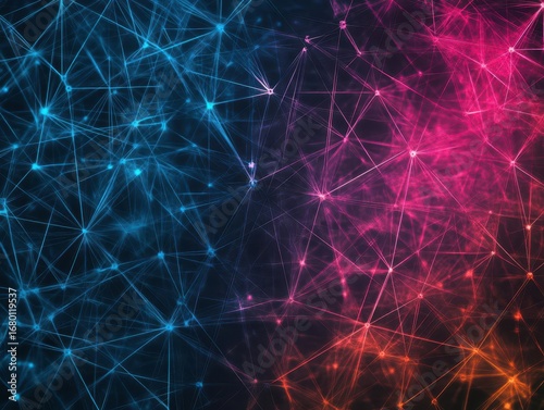 Abstract digital network visualization with vibrant interconnected glowing lines on dark background, representing data connections and technological innovation
