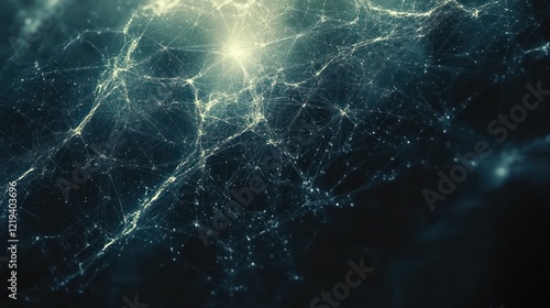 Abstract digital network with glowing nodes and lines.