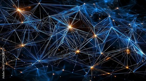 Abstract digital network with interconnected lines and glowing nodes, creating a sense of depth and technology. social security software insurance data concept