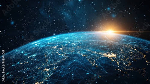 Abstract digital planet Earth with network connections on a blue background, a global communication and technology concept. Space view of the Earth in space. generated ai