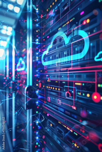 Abstract digital representation of cloud computing and data storage.