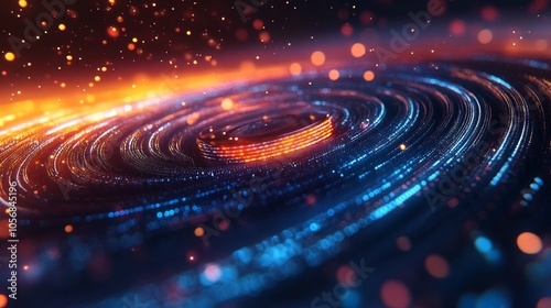 Abstract Digital Ring with Blue and Orange Glowing Lights in a Circular Formation