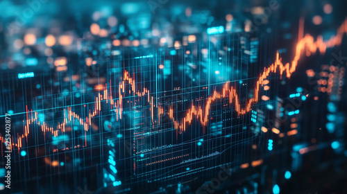 Abstract Digital Stock Market Chart Data Visualization Orange Blue Technology Graph Trend Growth
