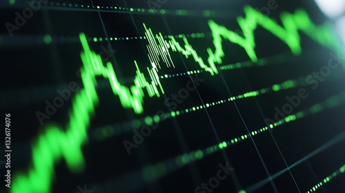 Abstract Digital Stock Market Chart with Green Line Graph Displaying Financial Data Trends and Analysis
