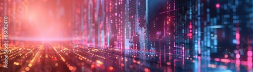 Abstract digital technology background featuring glowing data streams and circuit patterns in vibrant colors, representing advanced technology and innovation.