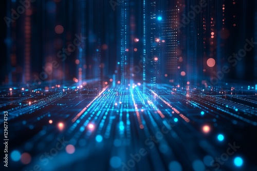 Abstract Digital Technology Background Futuristic Network Data Stream Bright Blue Orange Glowing Lines Modern Digital Art High Tech Innovation Science
